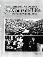 | Nous sommes toujours à la recherche de plus de littérature française pour publication sur cette page. Pourriez-vous nous laisser savoir si vous avez des écrits originaux de l'Église Mondiale de Dieu que vous pourriez nous prêter. Nous en prendrons bien soin et nous vous retournerons vos documents aussitôt que nous les aurons transformés en format digital. Nous paierons tous les coûts d'expédition. Si personnellement, vous n'avez pas de littérature française, auriez-vous connaissance d'autres personnes qui en aurait? Et, si oui, pourriez-vous nous aider à entrer en contact avec eux. Vous pouvez nous envoyer un courrier électonique à l'adresse suivante hwaorg@yahoo.com. Merci. |