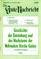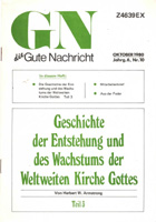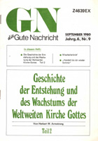 | Für die Vervollständigung unserer Webseite sind wir noch auf der Suche nach weiterer deutscher Literatur. Falls Sie selbst alte deutschsprachige Veröffentlichungen der Weltweiten Kirche Gottes haben, die Sie uns leihweise zur Verfügung stellen könnten, würden wir uns über eine kurze Nachricht freuen. Wir gehen sehr vorsichtig mit Ihren Materialien um und schicken sie nach dem Einscannen sofort an Sie zurück. Selbstverständlich vergüten wir auch alle anfallenden Versandkosten. Auch wenn Sie sonst jemanden kennen, der alte deutsche WCG-Literatur haben könnte, würden wir uns freuen, wenn Sie uns helfen könnten, mit ihm in Kontakt zu treten. Sie erreichen uns per E-Mail unter hwaorg@yahoo.com. Herzlichen Dank im Voraus. |